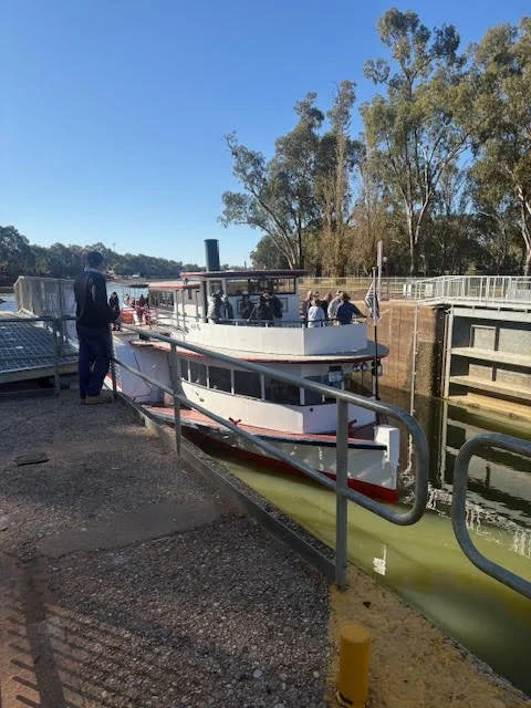 Enjoyed a lovely sunny 18’ day. Watched a paddle steamer go thru loch 11, visited Oz native garden and saw roof decorated with seed pods (imagine how much time and patience that would take to do!) plus the ‘Wow’ tree - 3500 years old roots, branches 700 years and still healthy and growing! Also watched dozens of pelicans and birds on Murray whilst morning coffee. Very relaxing.
