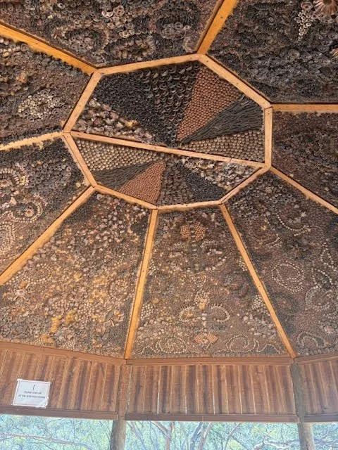 Have you visited the Australian Inland Botanical Garden near Mildura? A lovely show of Sturt’s Desert Pea at the moment, but wondered if the seed pod roof would be new to you.